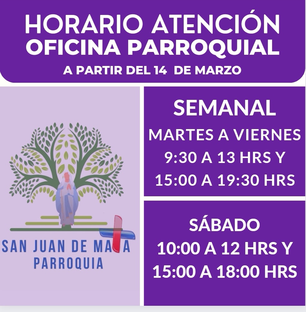 NUEVO HORARIO DE ATENCION OFICINA PARROQUIAL.