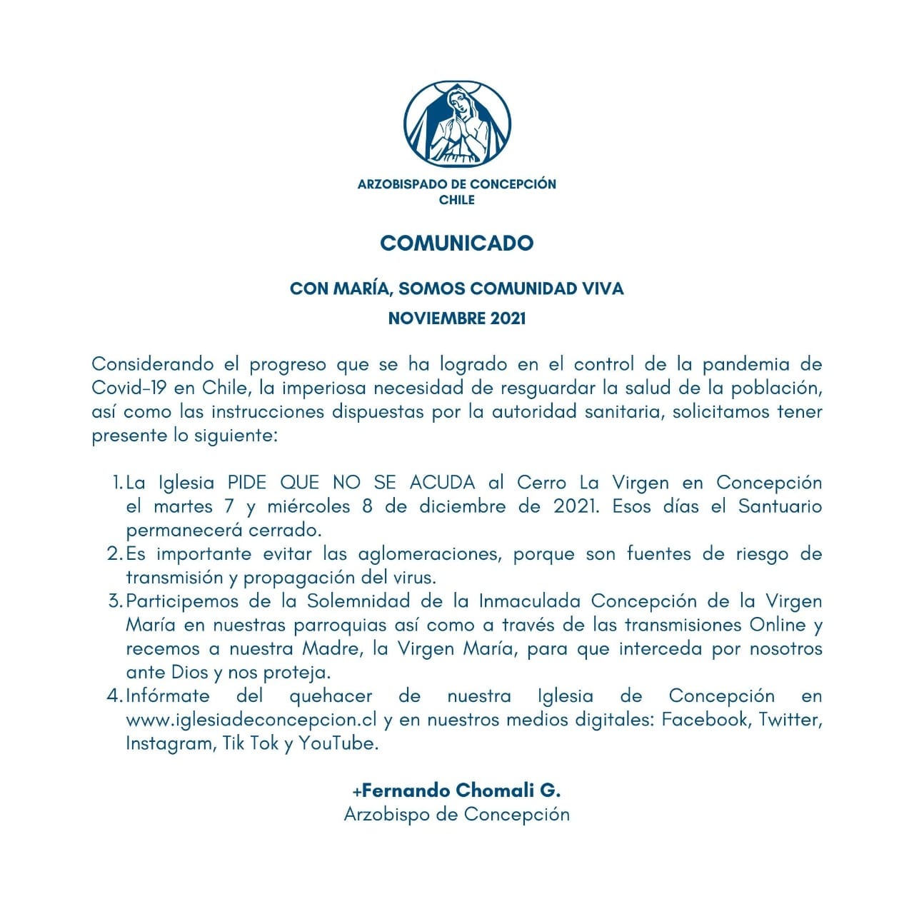 Invitamos a la comunidad parroquial a la peregrinación al cerro de la Virgen este sábado 20 de noviembre a las 7:30 hrs. El punto de encuentro será la plaza de Juan Bosco.